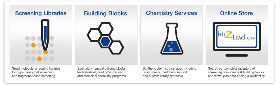 28년 동안 ChemBridge Corporation은 소분자 약물 발견, 화학 생물학 및 농약 발견 프로그램을 위한 화학 제품 및 계약 연구 서비스를 가능하게 하는 글로벌 공급업체였습니다. ChemBridge의 광범위한 포트폴리오에는 130만 개 이상의 다양한 표적 선별 화합물, 13,000개 이상의 합성 매크로 사이클, 14,000개 이상의 화학 구성 요소, Hit2Lead.com 온라인 화학 상점, 그리고 연구 집약적인 고급 맞춤형 도서관 및 합성/합성 화학 서비스 등이 포함되어 있습니다.