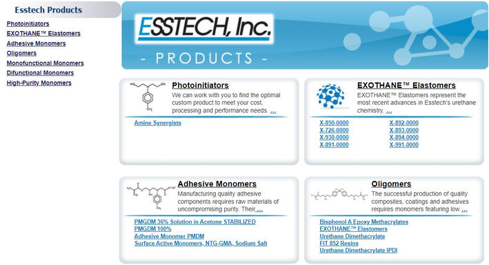 Esstech은 다양한 바이오메디컬 분야와 차별화된 기술을 요구하는 산업 분야의 첨단 소재를 개발, 제조하고 있습니다. Esstech는 상당한 개발 경험을 가진 팀으로, 이를 통해 고객에게 명확한 성능 차이를 제공합니다. 각 고객은 최종 시장에 접근하는 방법에 대한 고유한 비전을 가지고 있기 때문에 개별 고객과 긴밀하게 협력하여 부가 가치 솔루션을 설계함으로써 특정 산업의 요구를 지원합니다.